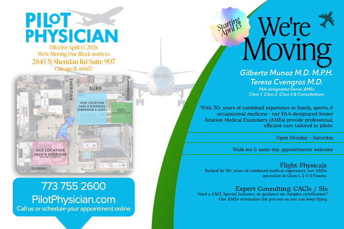 Doctor Munoz is a Senior AME in Great Lakes region with office in Chicago, Illinois serving Class 1, Class 2, Class 3, and AME Consultations.